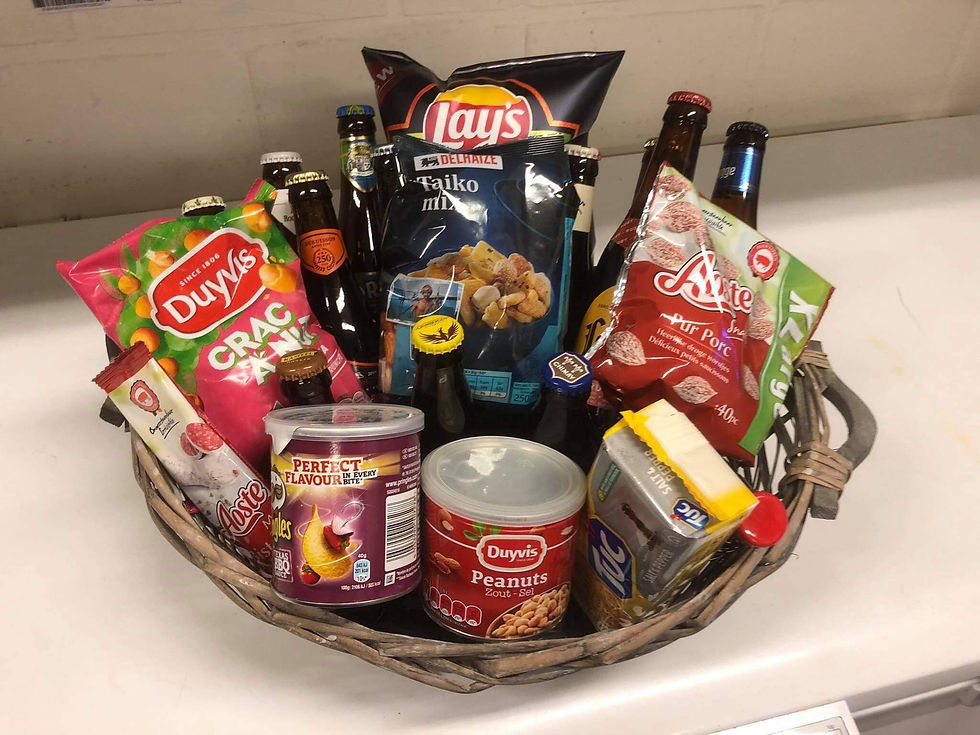 Onze geschenkmanden zijn voorzien van een variatie aan lekkere biertjes, inclusief aperitiefhapjes.
